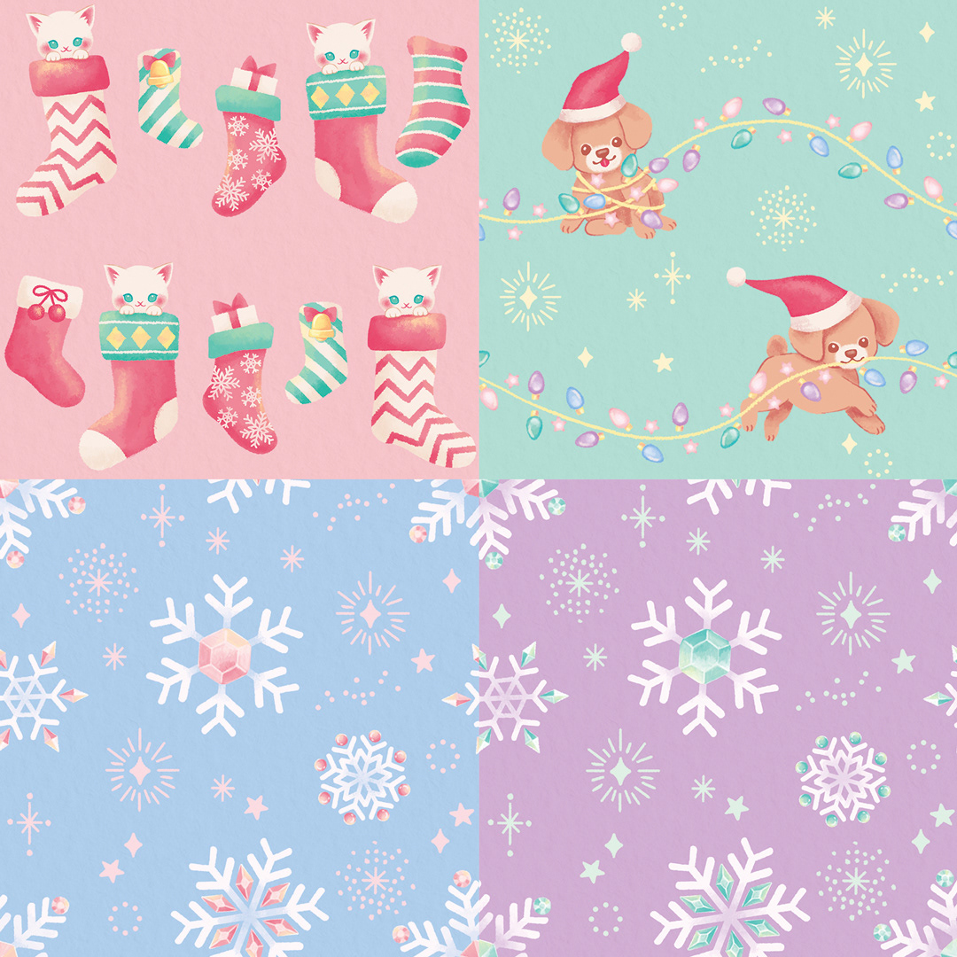 写真加工アプリの背景用パターンイラストを描かせて頂きました。