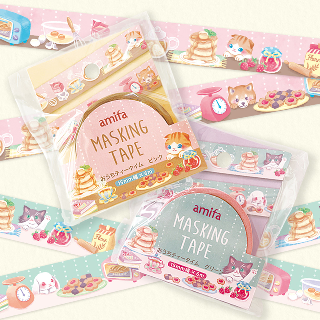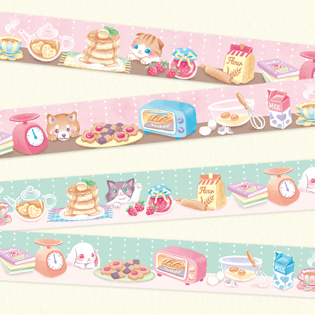 お菓子作りの様子を動物たちがひょっこりと覗いている、ほっこりとしたイラストになりました。
