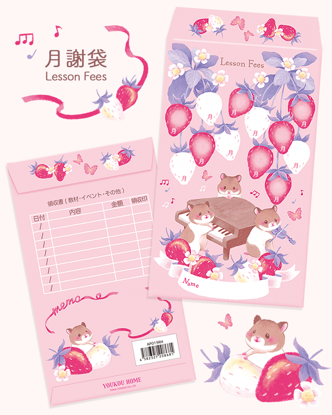 月謝袋のイラストとデザインを担当させていただきました。
